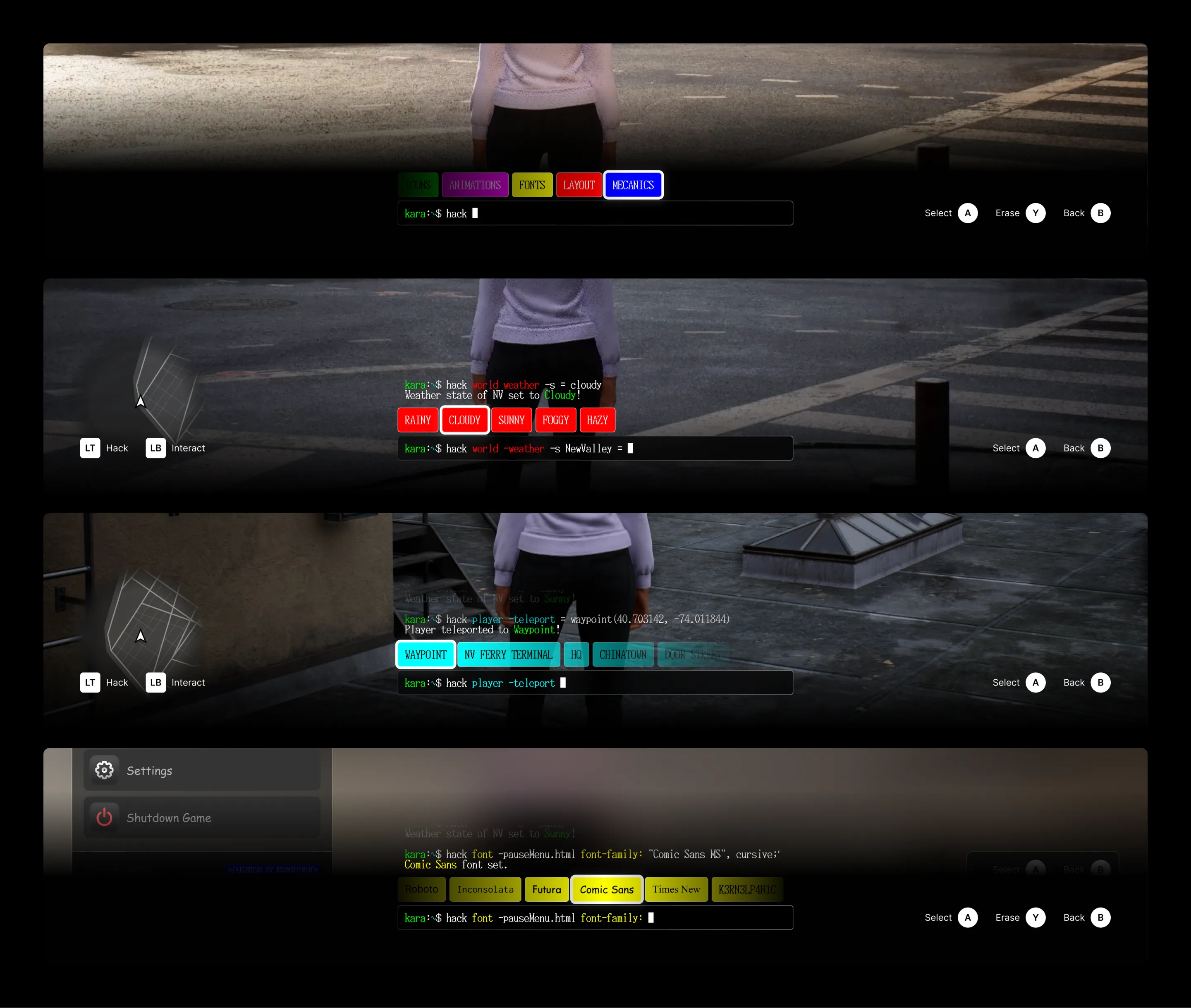 At first sight, the game looks like any 3rd person open world game, like Grand Theft Auto, Watch Dogs or Mafia. But when you start your Terminal at the bottom, you now have unlimited power on the world you’re in.