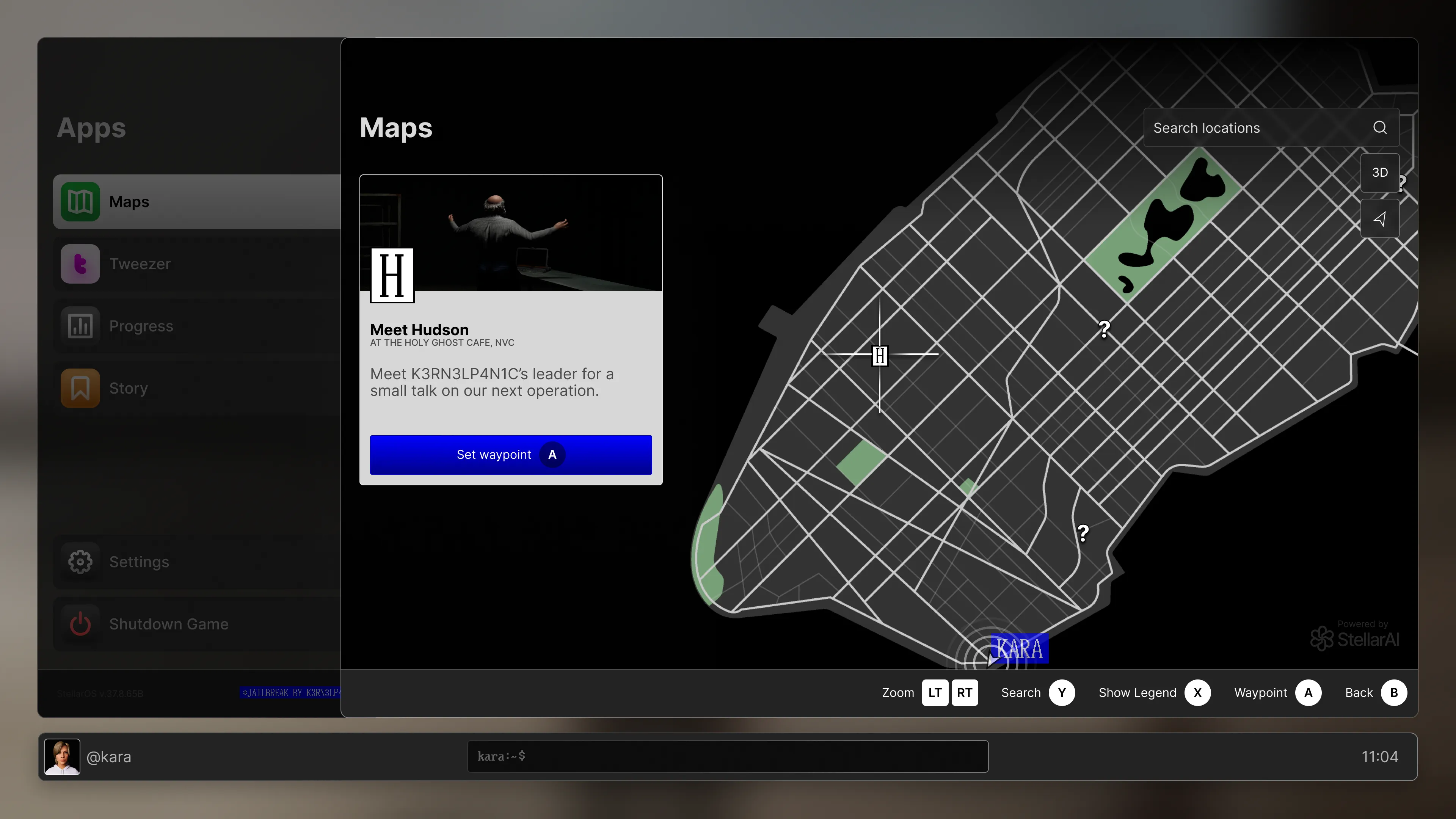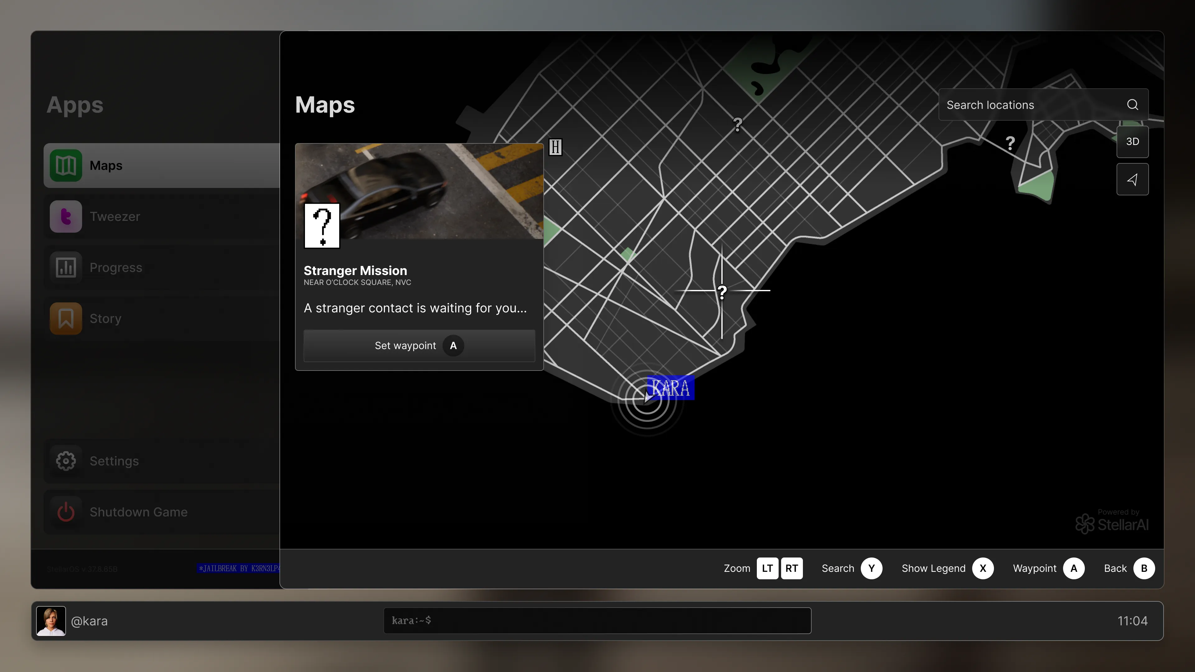 The pause menu looks like the UI of StellarAI’s Computer OS, from the bad guys. With Apps like Maps and Tweezer, you can get immersed into the vibrant city of New Valley and its people and feel this company’s presence.