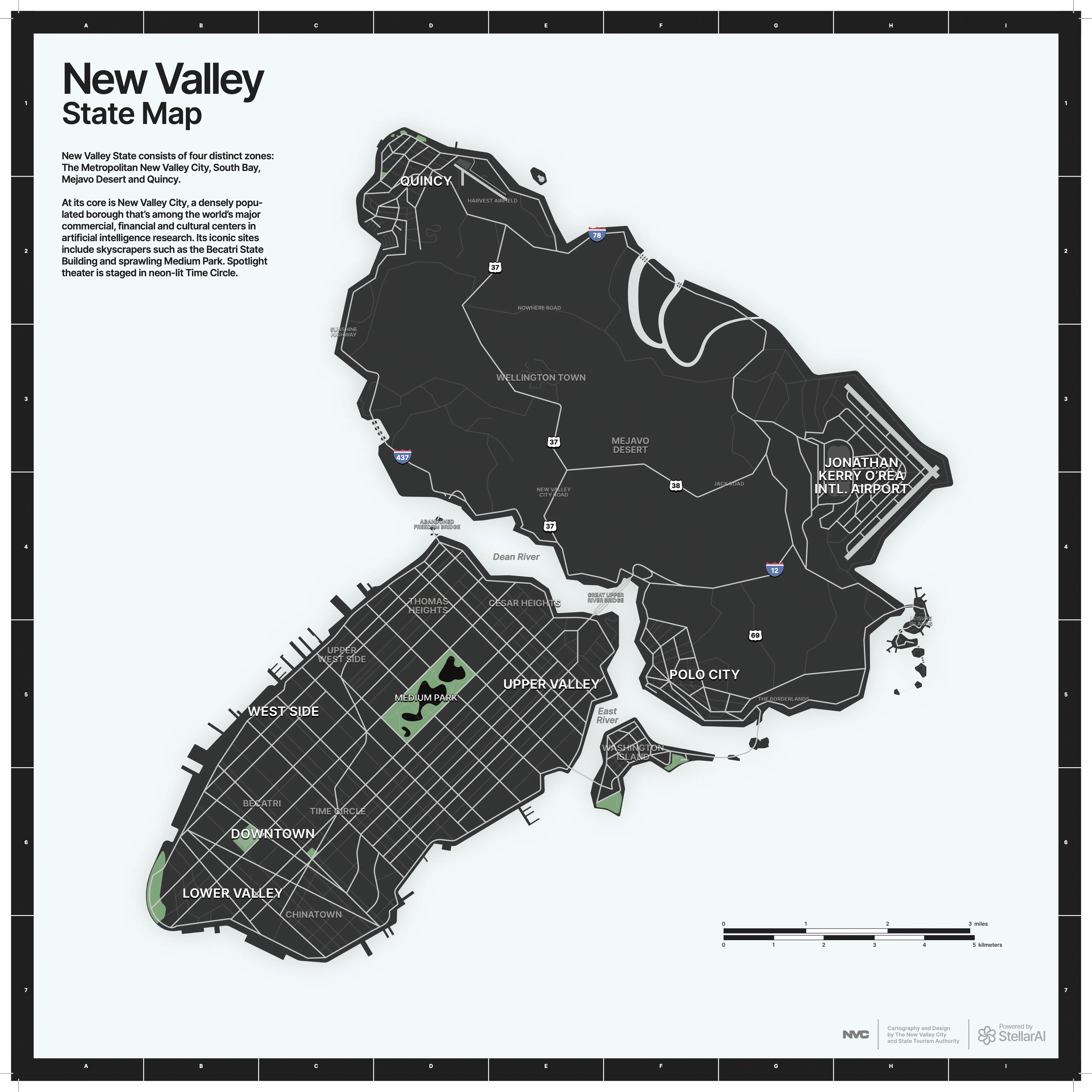 And to continue with this desire to immerse players, I integrated fictitious and parodic brands (visible on the teasers and Instagram) into the game environment. Banks, a regional TV channel, newspaper publishers, etc. A map was also designed to help players see this complex world.