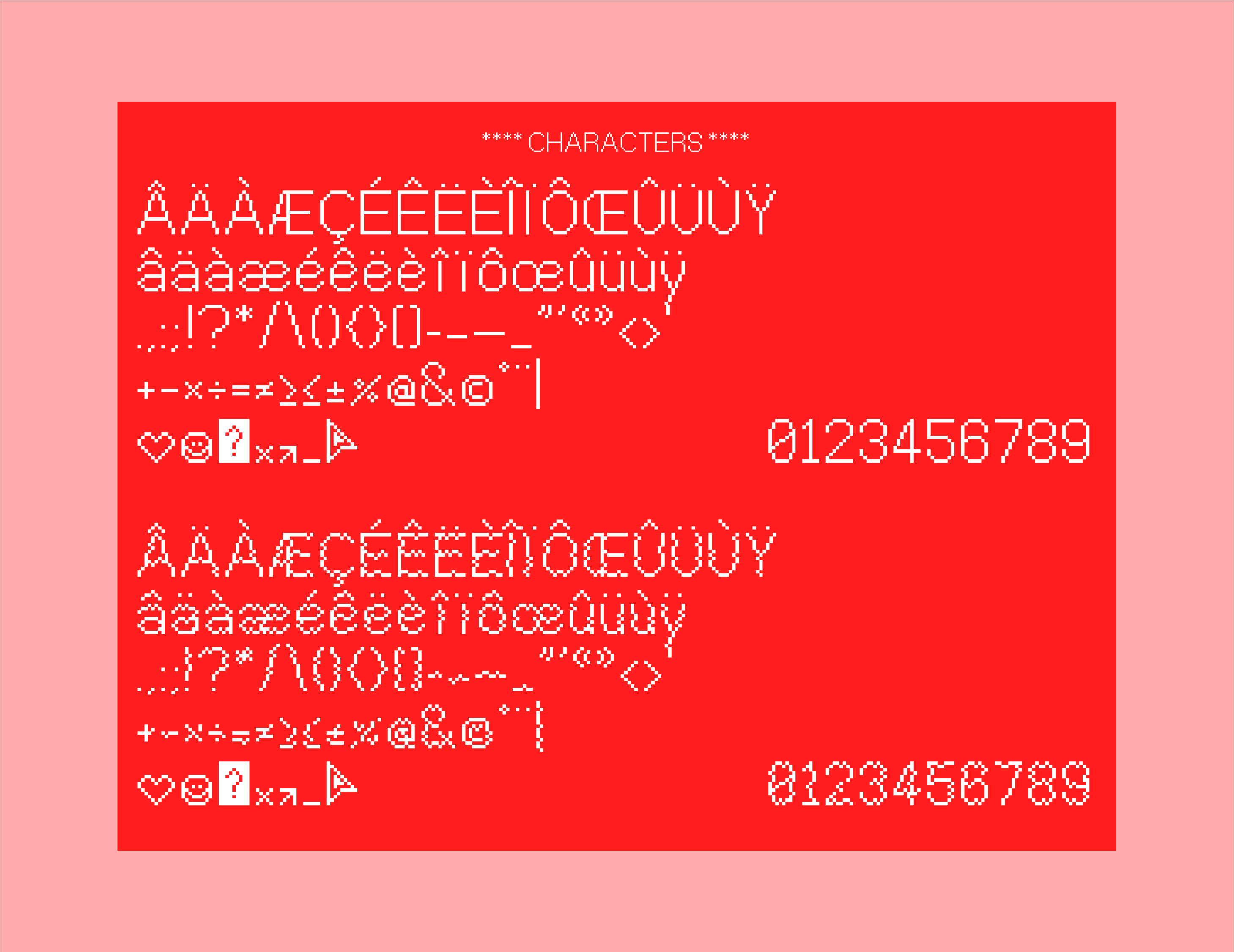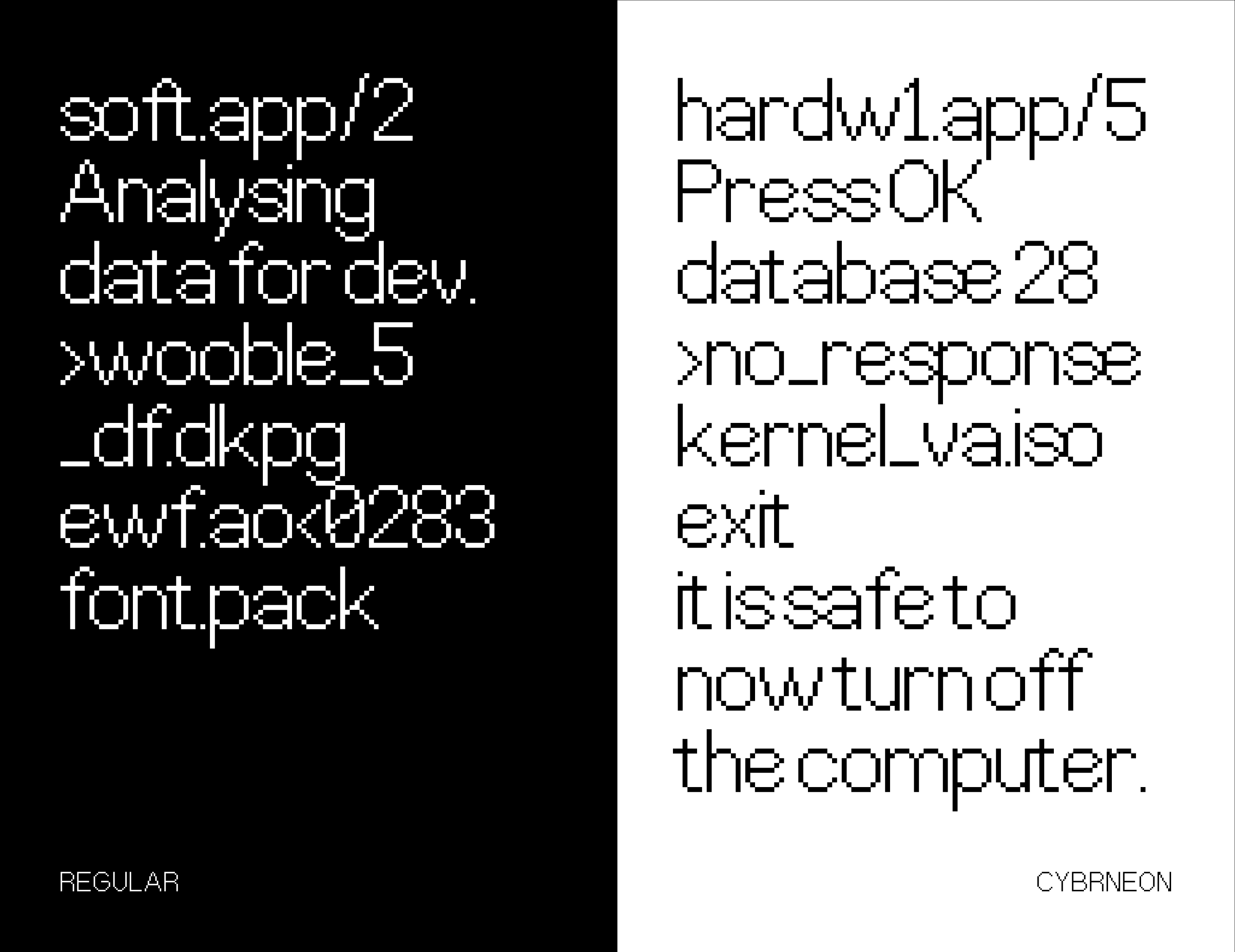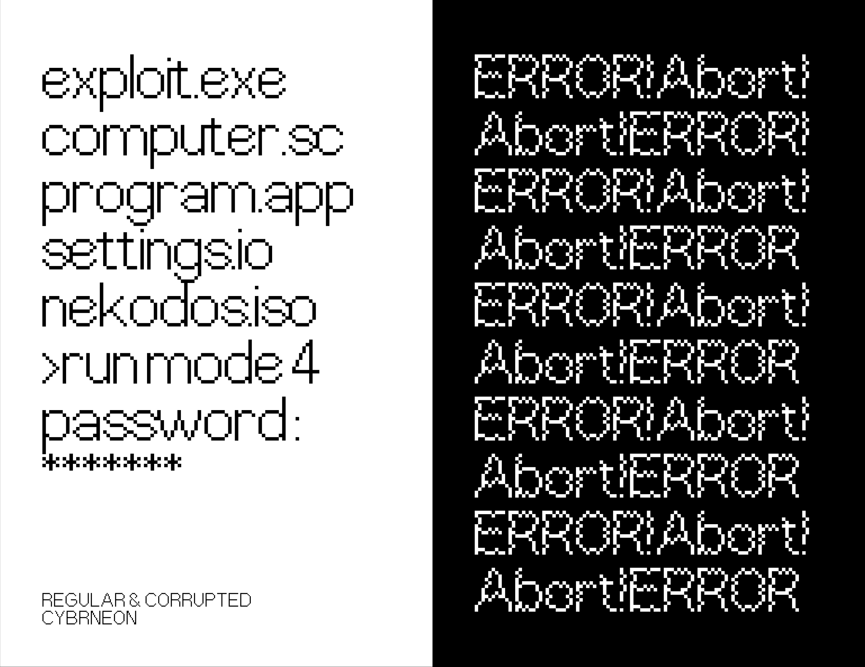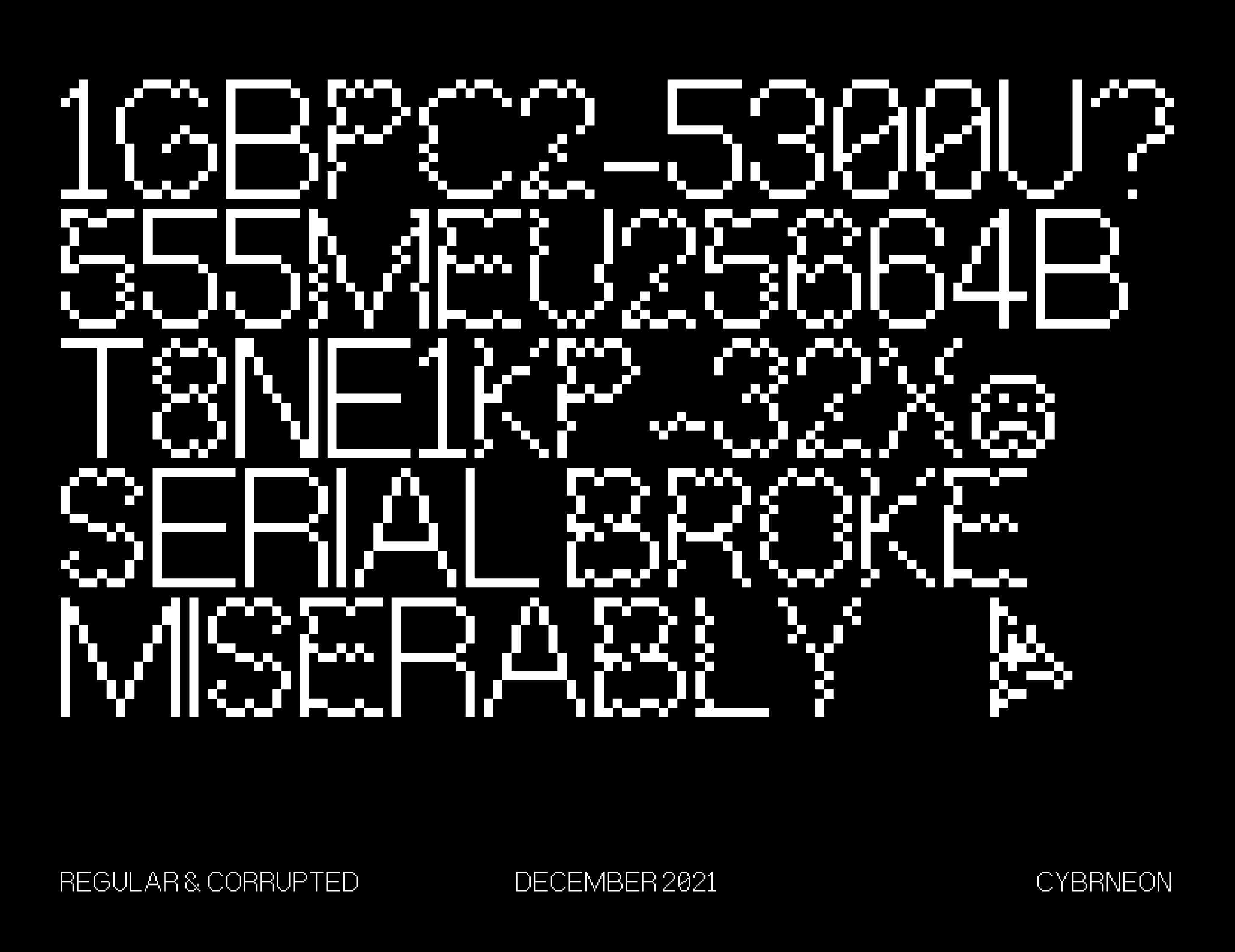 A simple, open-source free pixel grotesk typeface family of two fonts, Regular & Corrupted.